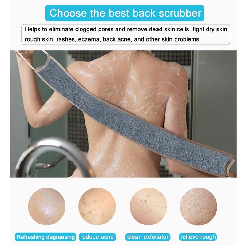 - Deep Cleaning & Invigorate: The skincare function helps to eliminate clogged pores and remove dead skin cells, fight dry skin, rough skin, rashes, eczema, back acne, and other skin problems. Flip the scrubber over to softly polish your body for a silky-smooth finish.