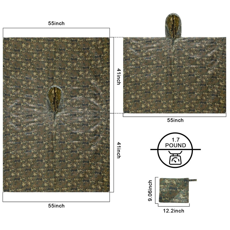 - Versatile uses - For men and women, it's the ideal companion, whether for everyday use or for camping, fishing, hiking or events, the poncho can also be used as a camping blanket, cover and tent tarpaulin.