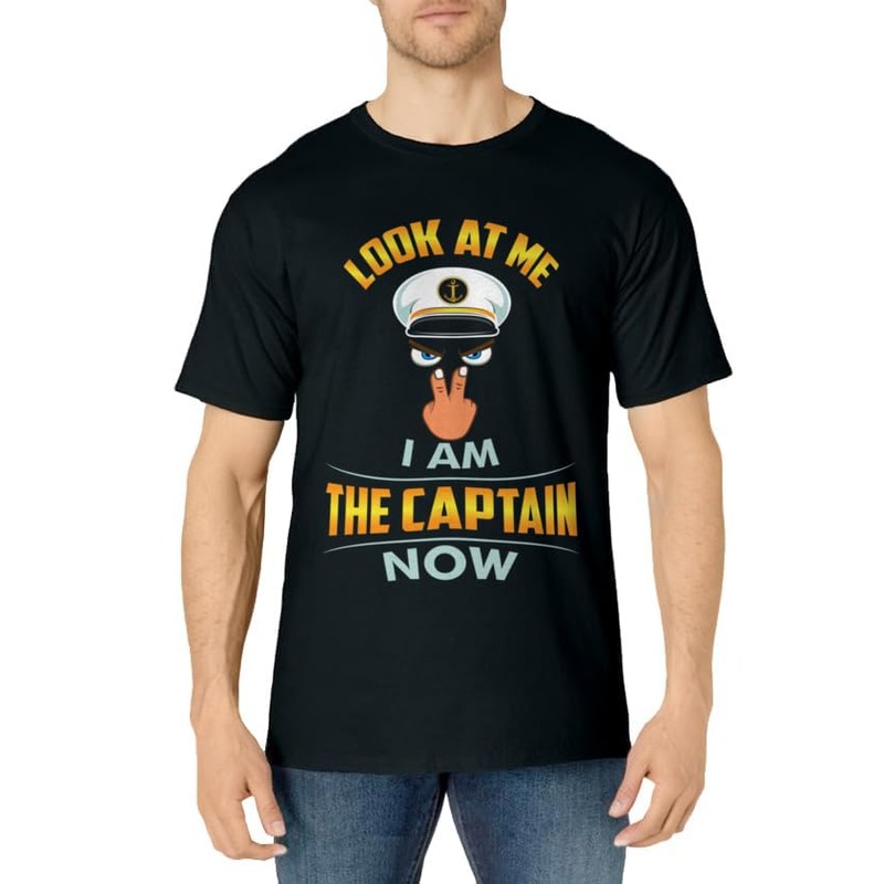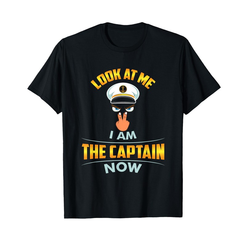 - A boating design that shows a hand with two fingers showing at the eyes and a captain's hat with anchor and the saying 'Look At Me I Am The Captain Now'. For the sailor in your life who loves funny boating or sailing design.