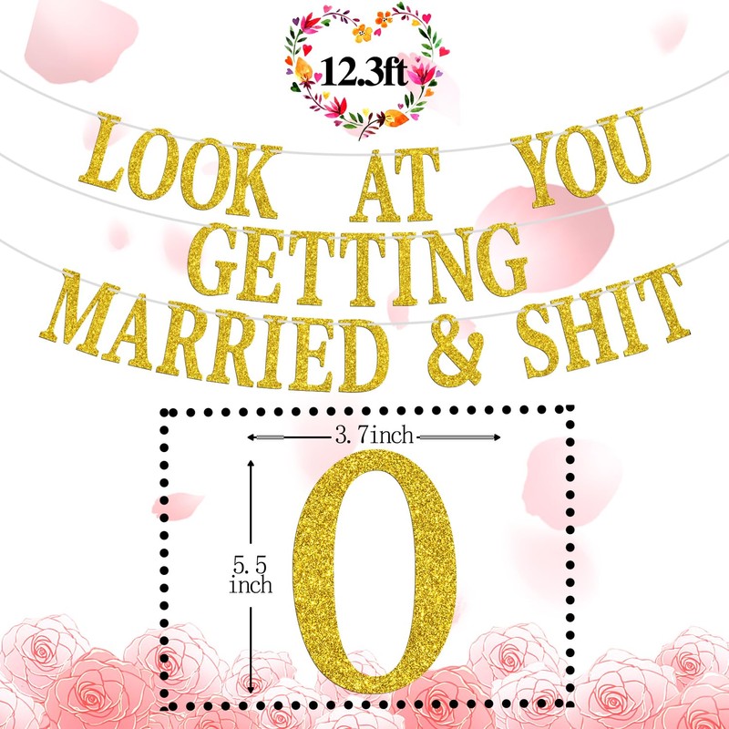 - 【Look at You Getting Married】: This banner with glitter letters is perfect for Wedding Party Decoration. Hope it add more gladness to your party.