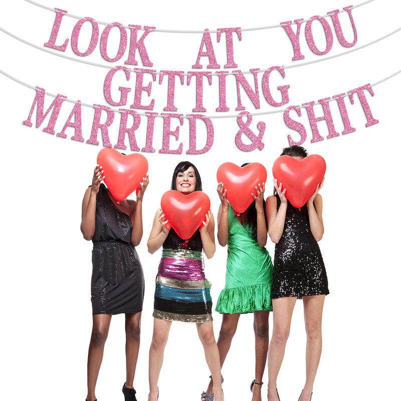 - 【Look at You Getting Married】: This banner with glitter letters is perfect for Wedding Party Decoration. Hope it add more gladness to your party.