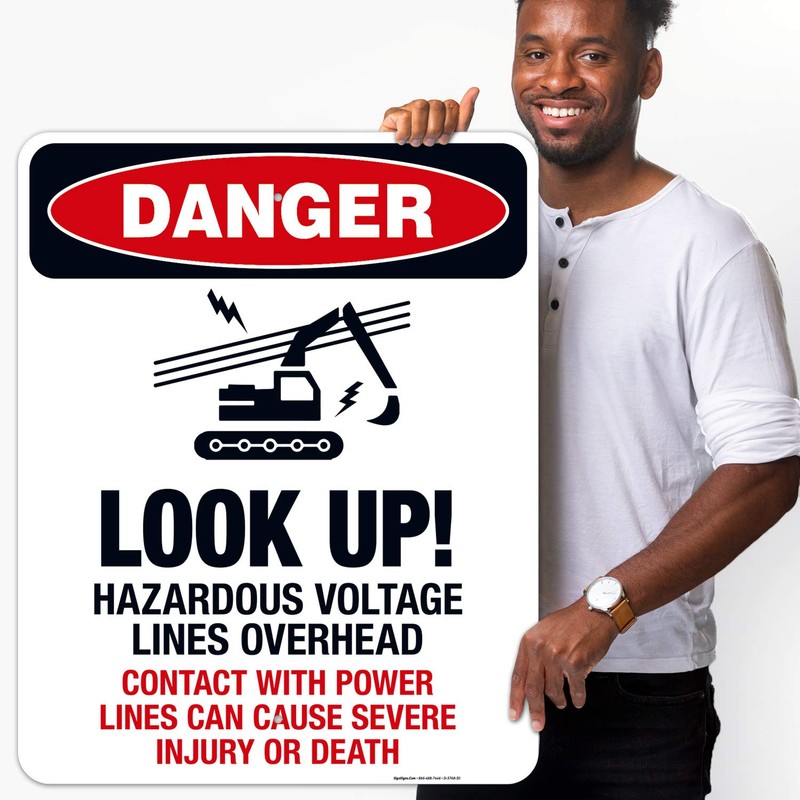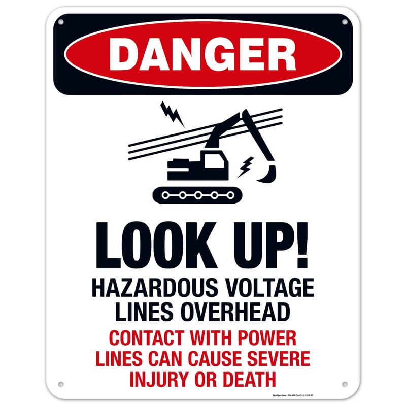 Look Up Hazardous Voltage Lines Overhead Sign, OSHA Danger Sign, (SI-3768) 24x30 Inches, 55 mil Thick HDPS (high Density polystyrene), Made in USA