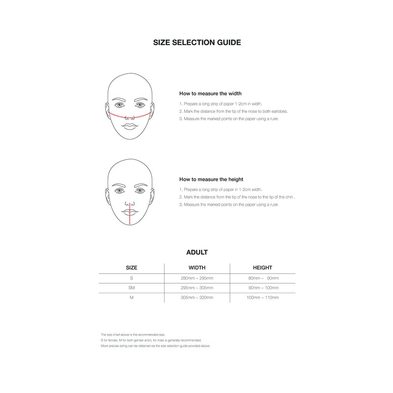 - AVAILABLE IN 3 SIZES (please see size chart): Small= Width (ear to ear) 28cm to 29.5cm. Height (nose to chin) 8cm to 9cm / Small Medium= Width (ear to ear) 29.5cm to 30.5cm. Height (nose to chin) 9cm to 100cm / Medium= Width (ear to ear) 30.5cm to 32cm. Height (nose to chin) 10cm to 11cm.