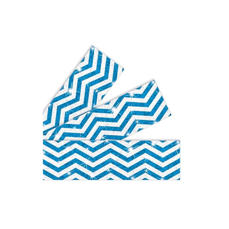 Add a special touch to displays with rich sparkle borders. Straight-edge design fits easily into any space. Layer with solid borders for an eye-catching look. Energize spaces and places and set the stage for learning success with contemporary designs and fun patterns. Showcase student work with sparkle. Display bulletin boards with flair. Add pizzazz to scrapbooks, crafts, and projects. The possibilities are endless! 2 1/4" x 32 1/2' per pack; 10 strips. or 275 x 35.75" per pack 10 strips. Precut, durable, reusable.