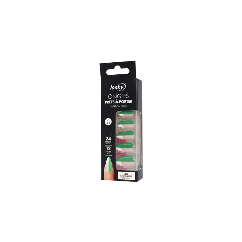 Looky Press On Nails Set #41 | 24 Pcs of 12 Sizes Ready-to-Wear False Nails | With Nail Glue & Stickers, Manicure Stick Included | Durable Fake Nail Kit for Quick Glam Looks | Easy Application