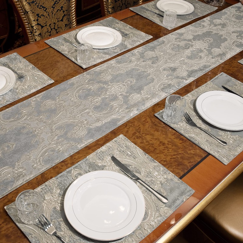 - TOP QUALITY MATERIAL: Made of 250gsm high pick density fabric, this luxury table runner is soft, delicate and comfortable to the touch. The reverse side uses high quality suede fabric, which is non-slip and could protect your table surface from scratches, stains and hot pans.