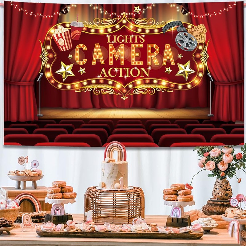 - Movie Party Decorations: The backdrop are designed with realistic camera design and bright colors, which perfect for decorating any movie themed birthday party decorations; Add the glamorous atmosphere with the lights camera action backdrop