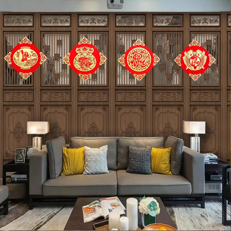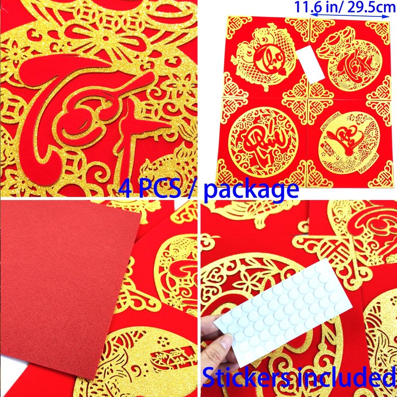 Package: 4pcs Vietnamese New Year Red Stickers with 4 patterns/Package