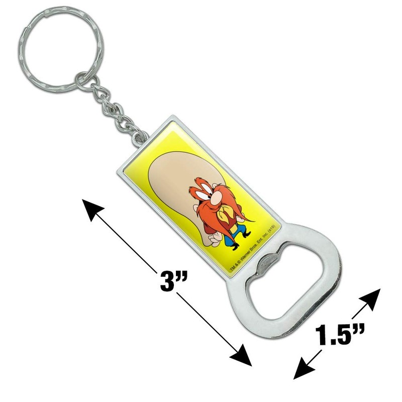 Looney Tunes Yosemite Sam Keychain Rectangle Chrome Plated Metal Bottle Cap Opener