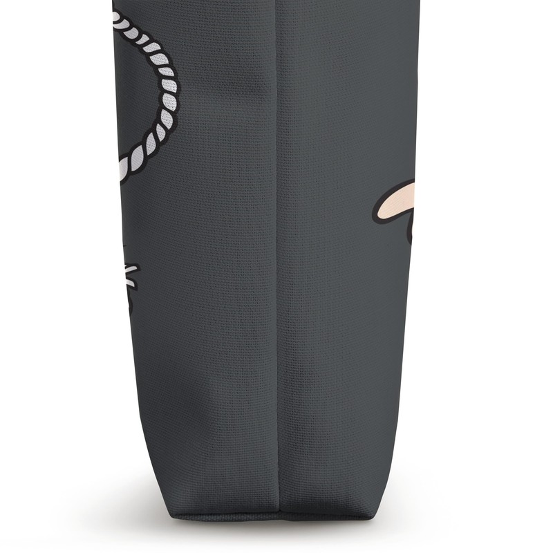 - 16” x 16” bag with two 14” long and 1” wide black cotton webbing strap handles.