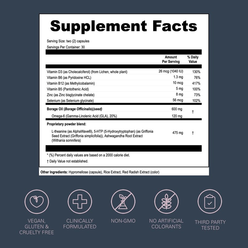 LOONI Balance Beam Mood Complex Supplement | PMS Relief with Ashwagandha, Vitamin B12, Omega-6, Zinc, Nootropics and Minerals | Helps Support Stress, Hormone Balance and Cravings | 60 Vegan Capsules