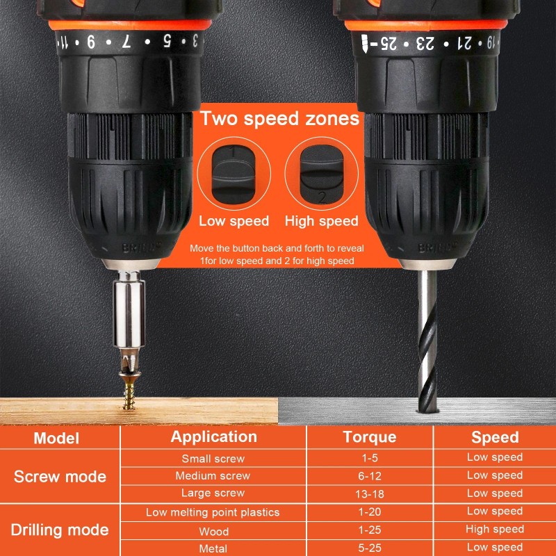 loonpon 20V MAX Lithium Cordless Drill/Driver with Dual-Speed & Torque Control