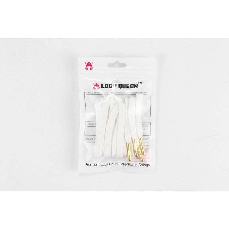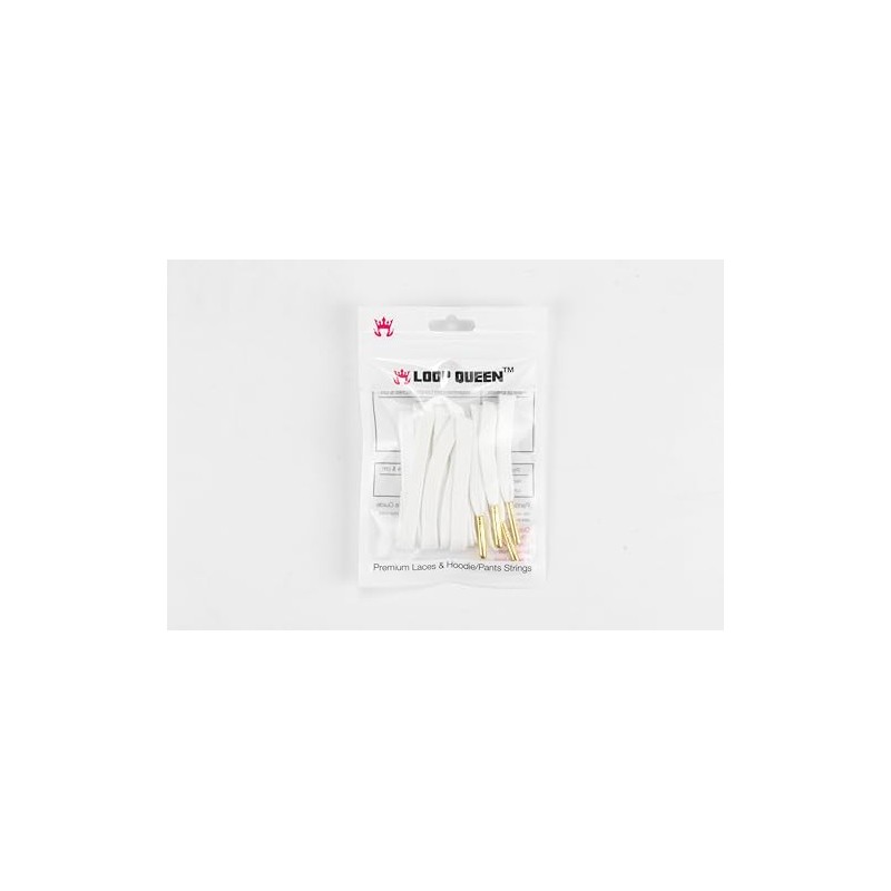 Loop Queen Shoelaces 1 Pair Flat Cotton White Shoe Laces with Gold Tips - 80 Inch