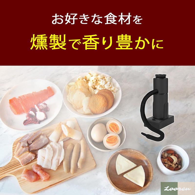 - 【たった5分でかんたん燻製】パワフル煙量機能を搭載。自宅やアウトドアでお手軽に冷燻を楽しむことができます。