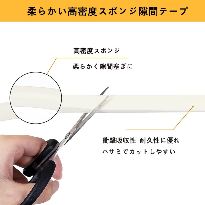 - (2 Gap Tape Set) Product Specifications: Gap Cushion Tape x 2 pieces; Size: 0.5 inch (12 mm) Width x 0.2 inch (6 mm) Thickness x 1.4 ft (4 m) Length (per piece); Color: White; This is a thick foam sponge with excellent cushioning. Comes with a convenient tape that is easy to cut with scissors. Absorbs impacts from gaps and doors, sliding doors, sliding doors, sliding doors, and sliding doors, etc