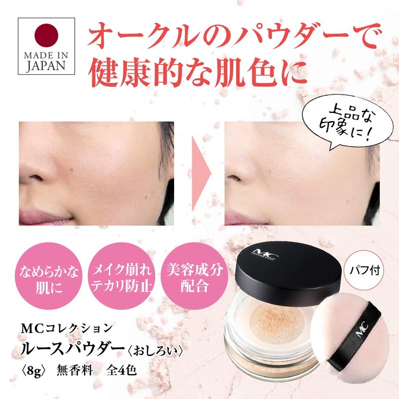 - For natural luster and transparency: Loose powder covers dullness, giving a sense of transparency. Complements the foundation luster and creates an even, smooth skin