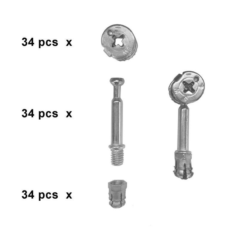 • 34 sets of cam fittings, per-insert nuts, and dowels are supplied
