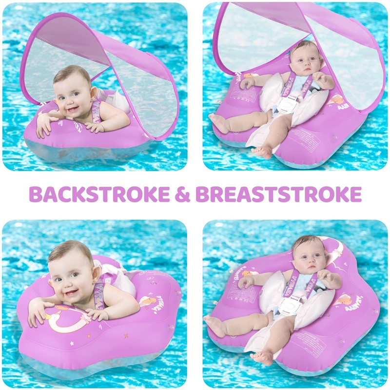 - 【Skin-friendly Material】① The Baby floats are made of upgraded 0.35mm PVC material, safe and environment- friendly, soft and odourless, designed for infants and toddlers. ② Added sun canopy, covered with UPF 50+ sun protection coating to protect baby's skin from UV rays.