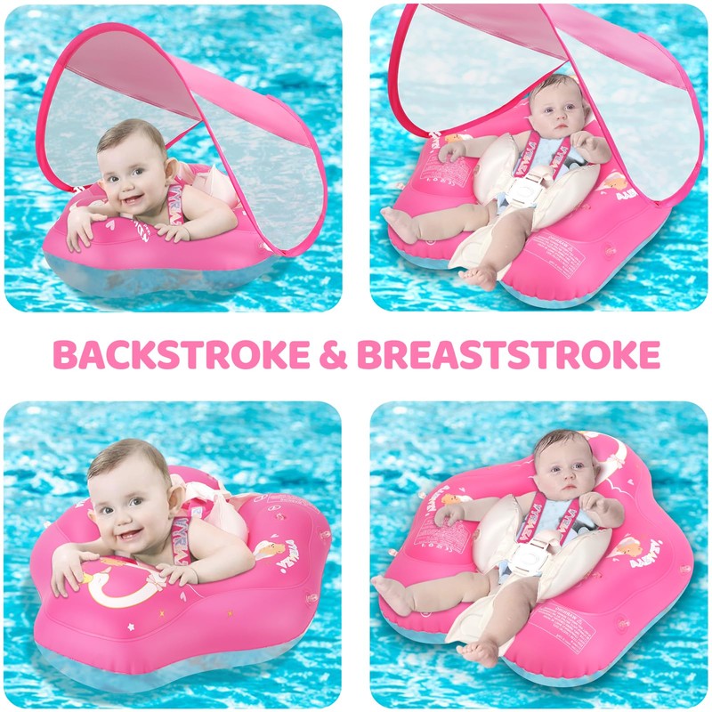 LOOWARTS Inflatable Baby Swimming Ring from 6-36 Months, Swimming Float with Canopy and Safety Seat, Baby Swimming Trainer Swimming Aid Floating Ring, with UPF50+ UV Protection
