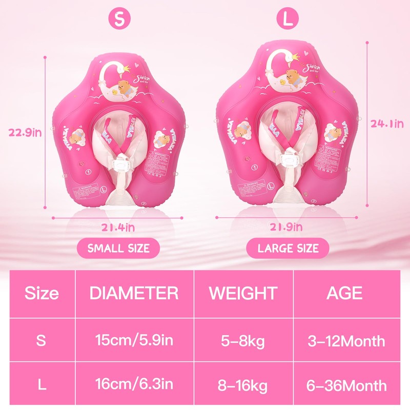 - Size selection: Suitable for babies aged 6-36 months/1-3 years and a weight of 10-15 kg. When using, it is recommended to inflate the baby swim ring to 70-80% for more comfortable use