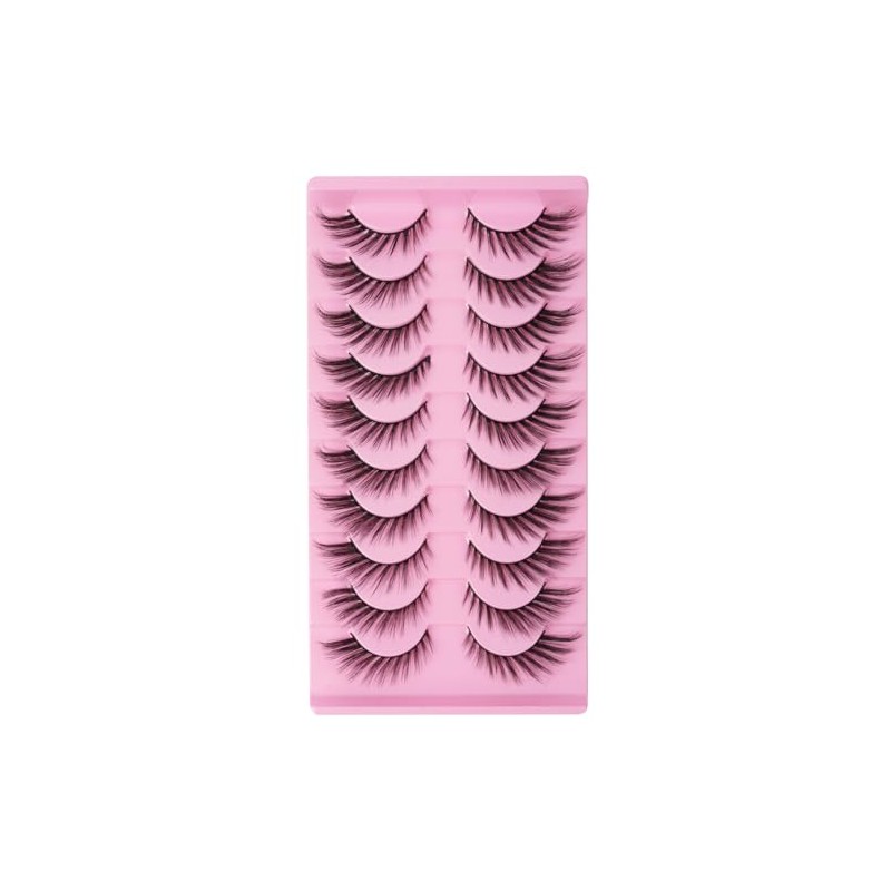 LOPHE 10PCS Cat Eye Lashes False Eyelashes, Thick and Soft Mink Like Cat Eye Eyelashes, Fluffy Fox False Eye Lash, D Curled and Wispy Corner Lashes Set, Extended Angled Look, Reusable(#XX5)