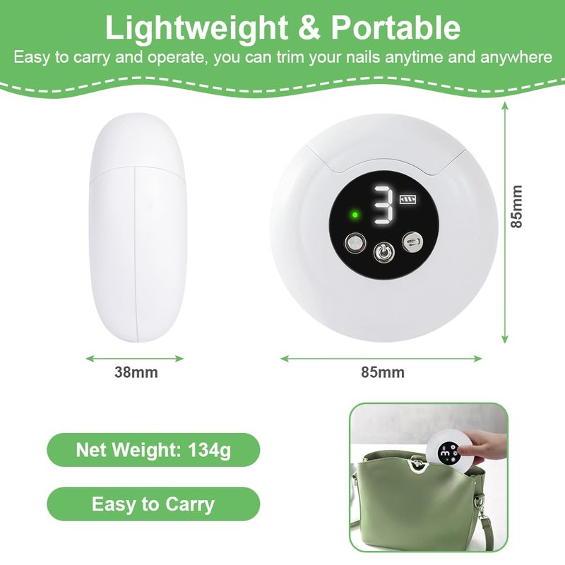 - Nail Scraps Storage: LOPHE automatic nail clipper comes with a nail chip storage; very clean and hygienic, easy to clean. The nail clipper is also equipped with an LED light, which is specially designed for cutting nails at night