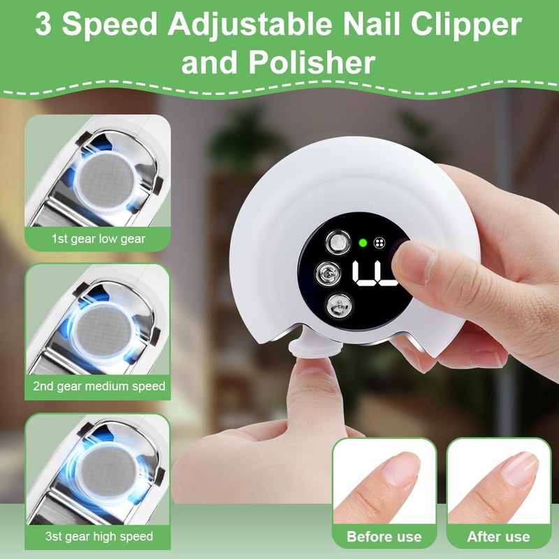 - Safety Nail Clipper: The blade of LOPHE electric nail clipper adopts a built-in design, which will not endanger your fingers when your nails are inserted into the grooves. Both modes have 3 speeds, you can switch between low speed and high speed mode, it is suitable for all ages