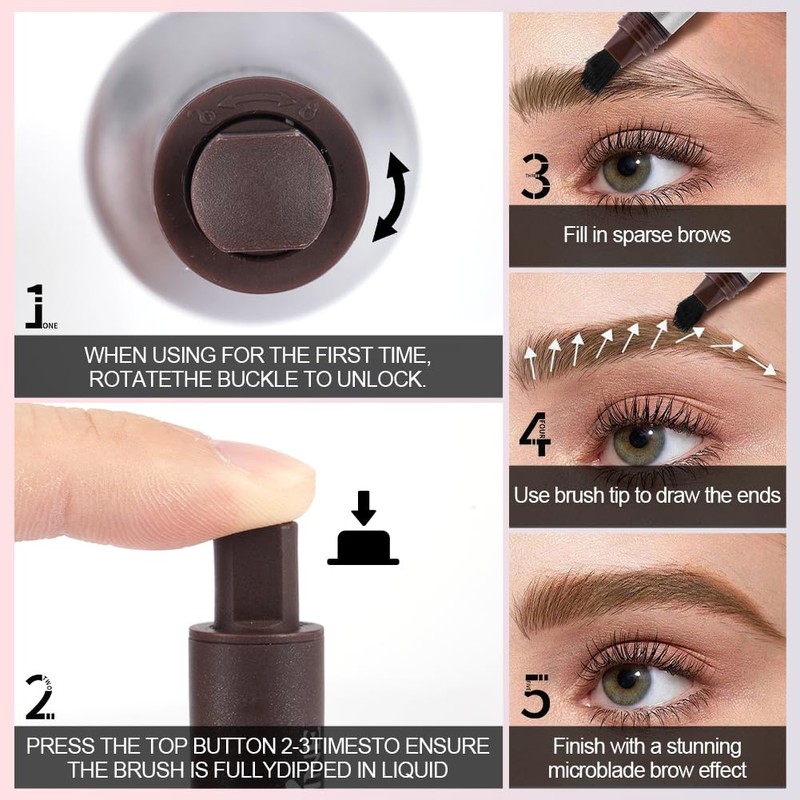 - 【Einfach zu Verwenden】: Drücken Sie einfach den oberen Knopf, um das Pigment einzutauchen, kontrollieren Sie einfach die Menge und tragen Sie es dann sanft entlang der Richtung Ihrer Augenbrauen auf, um einen zufriedenstellenden Augenbraueneffekt zu erzielen!