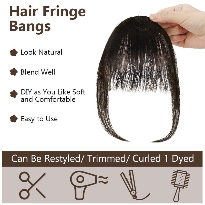 - Multiple Color Options: The clip in fringe bangs are available in six colors, including brown-black, black, dark brown, light brown, gold, and gray-gold, and two materials, real hair wigs and chemical fiber wigs, to meet your different preferences