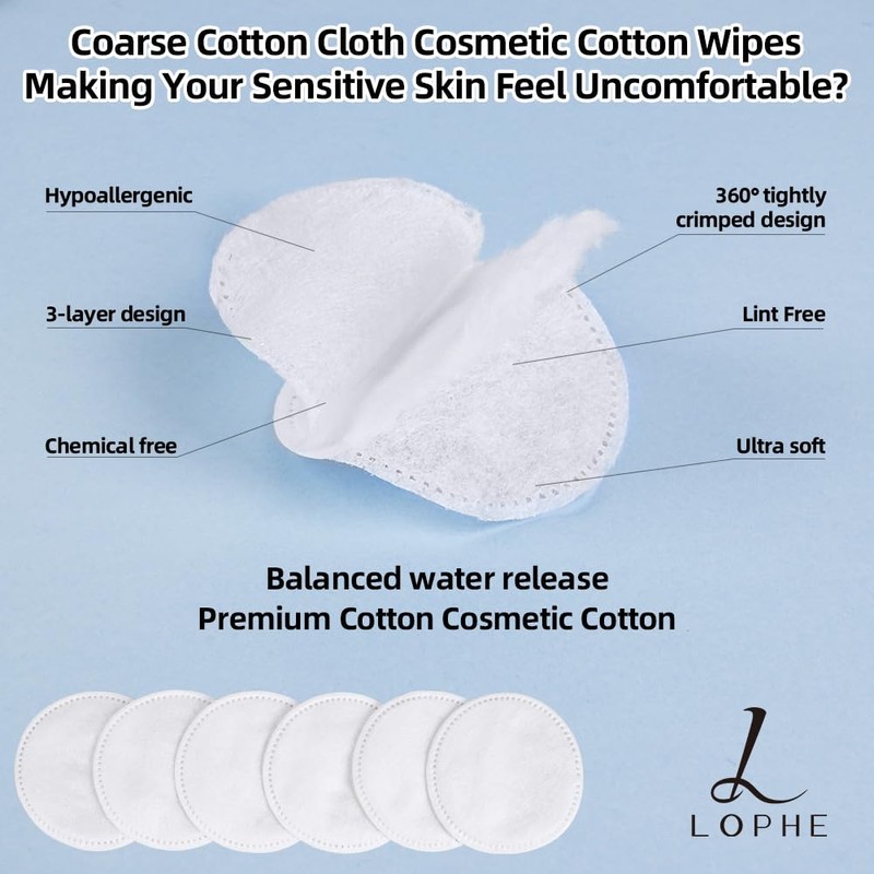 LOPHE Cotton Wool Round Pads, 300 Count Soft & Gentle Cotton Pads Absorbent C...