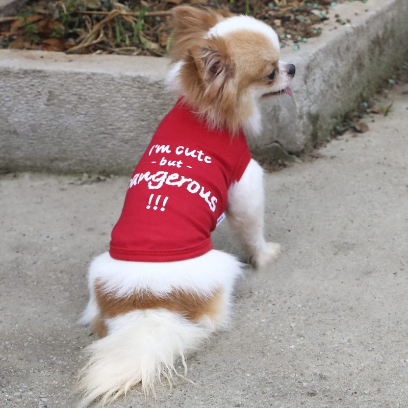 LOPHIPETS Dog I'm Cute But Dangerous Letter Print Shirts for Small Dog Chihuahua Yorkie Puppy Cat Clothes Tee-Red/S