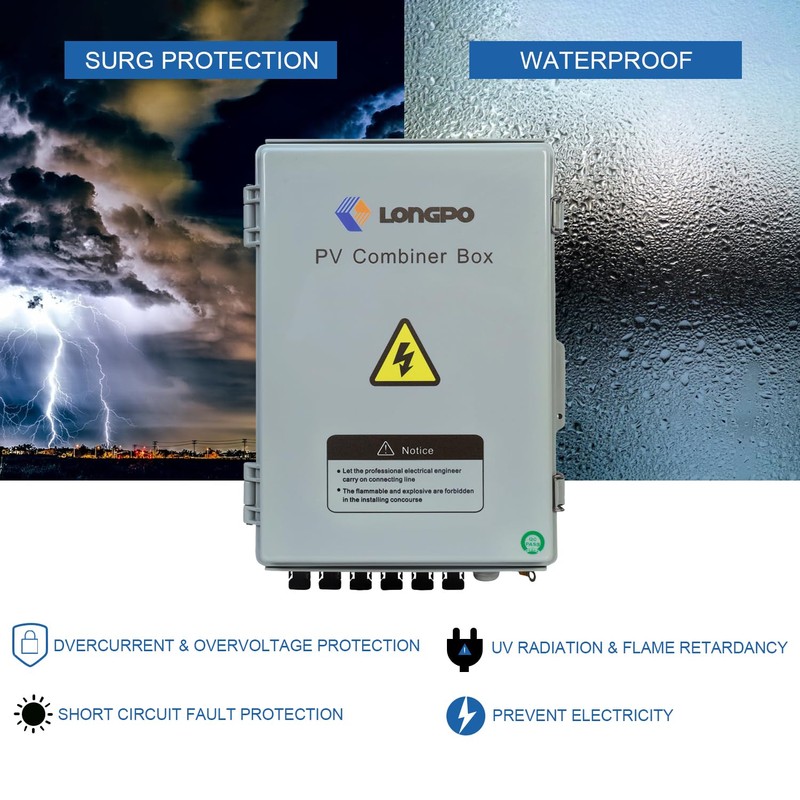 • With longpo PV Combiner Box, each photovoltaic does not exceed 15A/250Vdc. Up to 720W in 12V system, 1440W in 24V system, 2880W in 48V system. The solar combiner box works with photovoltaic grid-connected and off-grid power generation systems. Compatible with any brand of solar panel and solar connector.