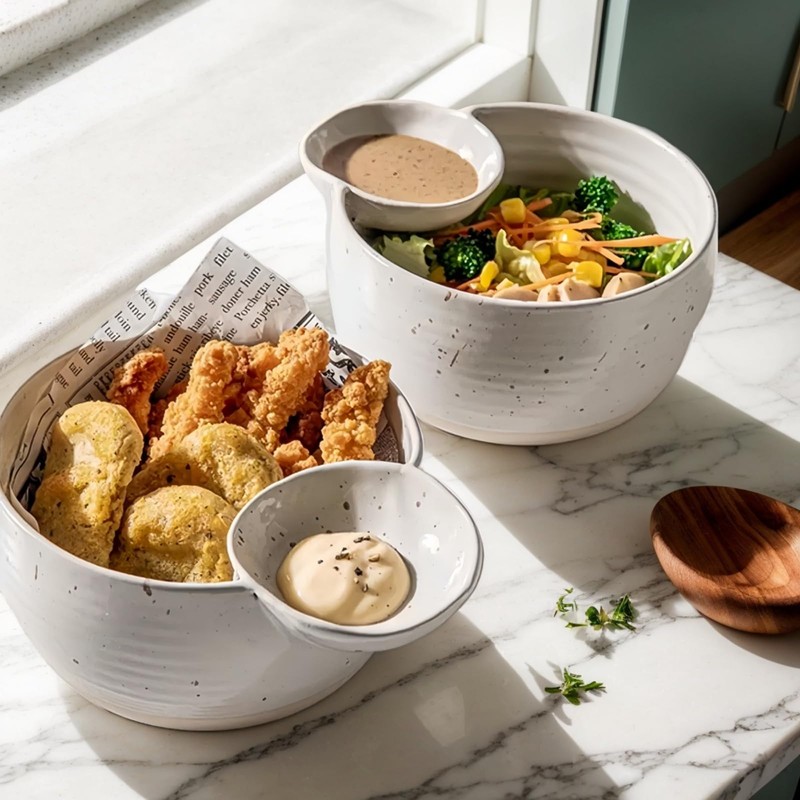 - Ideal for Sauces and Dips: Equipped with a separate dipping bowl, this set is perfect for soy sauce, dips, or other condiments. Whether you’re enjoying fries, potato chips, fried chicken, or other snacks, this bowl meets your dipping needs while keeping the main dish dry and preventing food from becoming soggy