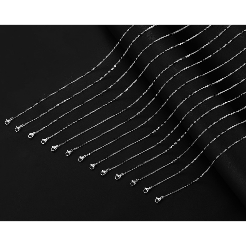 - El paquete incluye: 32 piezas de collares de cadena de eslabones de acero inoxidable, vienen con cierres de langosta, se pueden usar con la mayoría de los colgantes, satisfaciendo sus necesidades de reemplazo y uso.