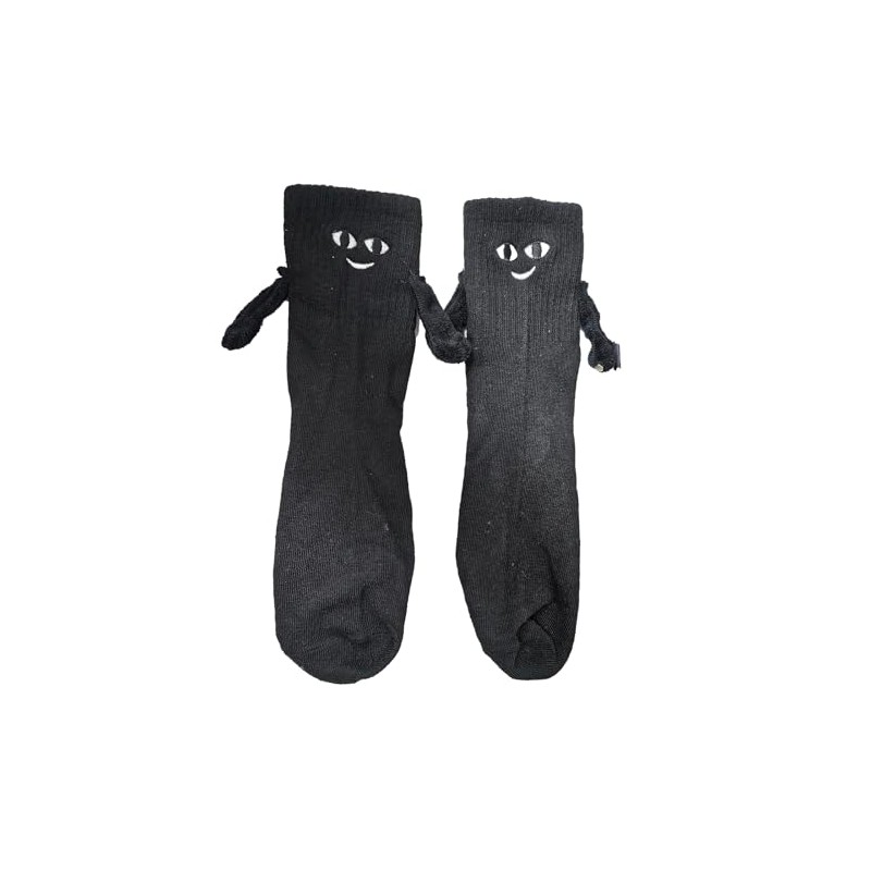 Lopsity Magnetic Holding Hands Socks Mid-Calf Socks Novelty Funny Socks for Men Women (CA/US, Alpha, Large, Regular, Regular, BLACK)