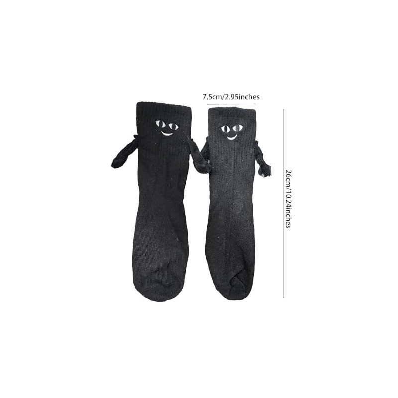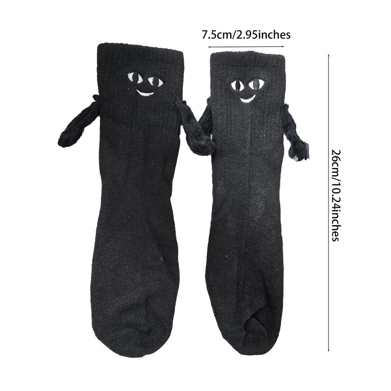 Add a delightful twist to your sock drawer with these charming magnetic holding hands mid-calf socks. Perfect for couples, these novelty socks feature an endearing design that creates the illusion of holding hands when worn side by side. The built-in magnets cleverly connect the socks together, making them a playful and romantic choice for special occasions like Valentine's Day, anniversaries, or birthdays. These mid-calf length socks offer both style and comfort, suitable for both men and women. The fun, conversation-starting design makes them an ideal gift that's sure to bring smiles. Whether worn as a matching set with your special someone or given as a heartwarming present, these magnetic socks add a touch of whimsy to any outfit. Please note that the magnets are securely integrated into the design for lasting functionality.