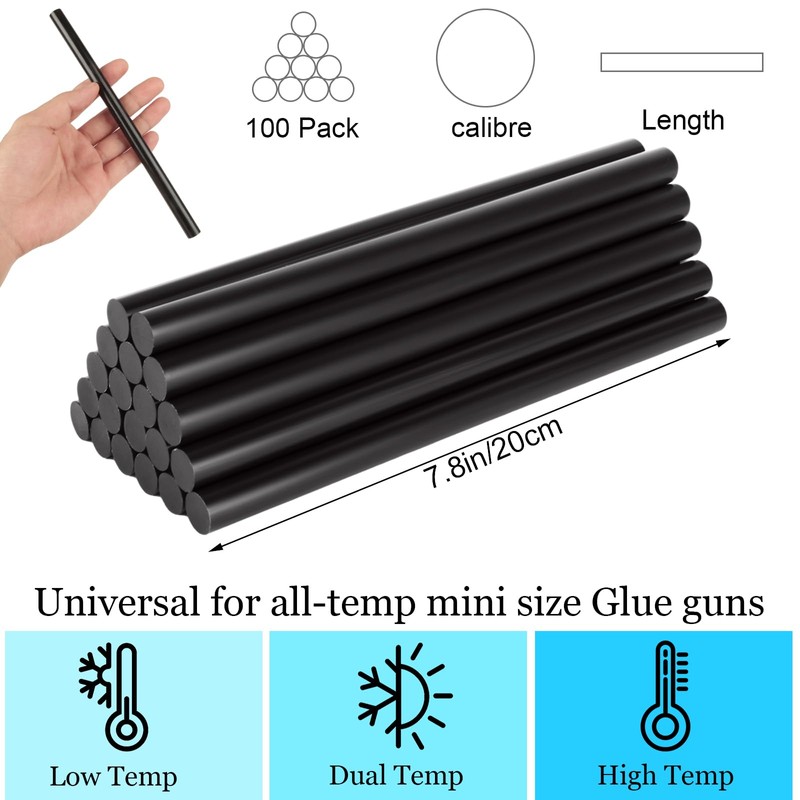 - Value Pack: You will receive 100 PCS black hot glue sticks, with a length of 7.87 inches/ 200mm, and a diameter of 0.43 inch/11mm, the quantity is enough for you to use in your daily life and share with others, suitable for most maintenance purposes