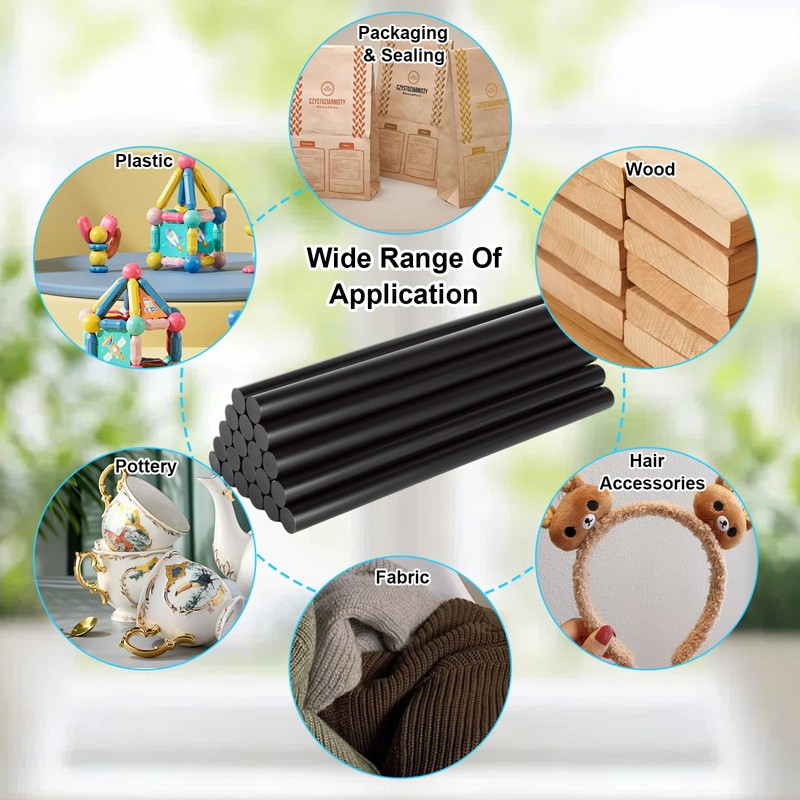 - Wide Application: The black hot glue sticks are widely used on plastics, fabrics, wood, felt, ceramics, foam, lace, ribbons, glass, etc. It's perfect for making adhesive-coated projects, electrical and electronic appliances, general repairs, home vacation decorations and DIY crafts