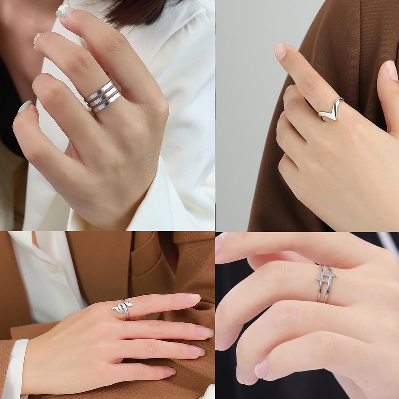 - 7 pcs silver stainless steel minimalist rings set includes snake rings, open cross rings, tree layer rings, S rings, V rings, double layer rings, A variety of simple styles rings , All-match fashion for daily casual dress.