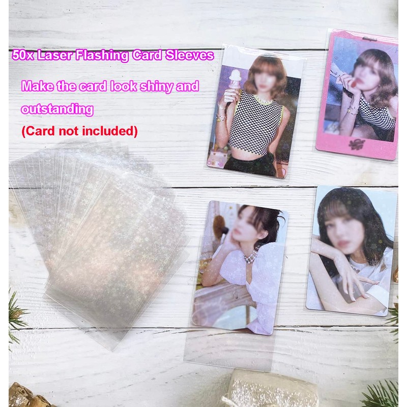 - Delicate Design – This kpop photocard holder book is designed with an exclusive cover, which can be decorated with Korean stickers, and also with 50pcs clear laser flashing card sleeves, your card will look very shiny and outstanding in the light condition. It is very suitable for star photocards collecting.