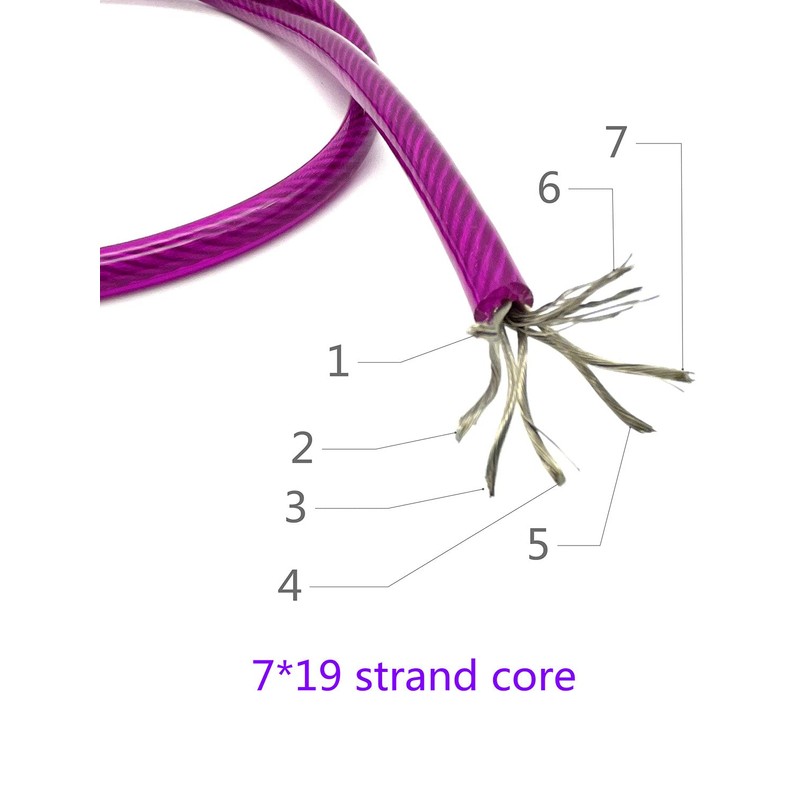- Cable de acero trenzado con núcleo de 7 x 19 hebras con vinilo protector de óxido que aumenta la resistencia al corte