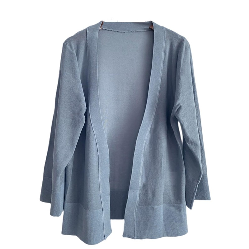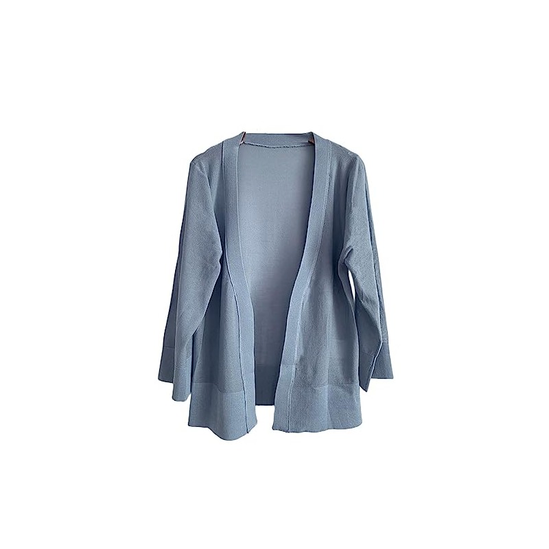 Loradouphi OL 210520 Long Sleeve Women's Cardigan, No Buttons, Lightweight, Knit, Protects From AC, UV, Sunburn, Cut and Sewn, Top, Spring, Summer, Autumn, Plain, Simple, Slimming, Roomy, Stylish, blue