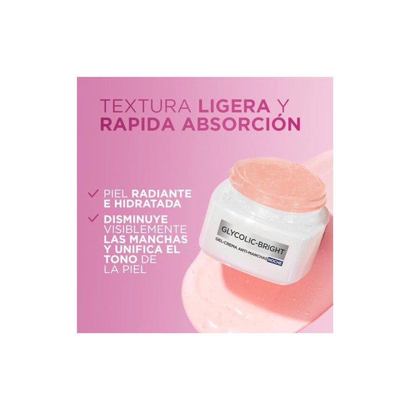🌟 ⭐ L'Oréal Paris crema noche antimanchas Glycolic Bright, 50ml - Gel crema facial con Acido Glicólico y Niacinamida que reduce todo tipo de manchas, Textura ligera y de rápida absorción. ⭐ 🌟
