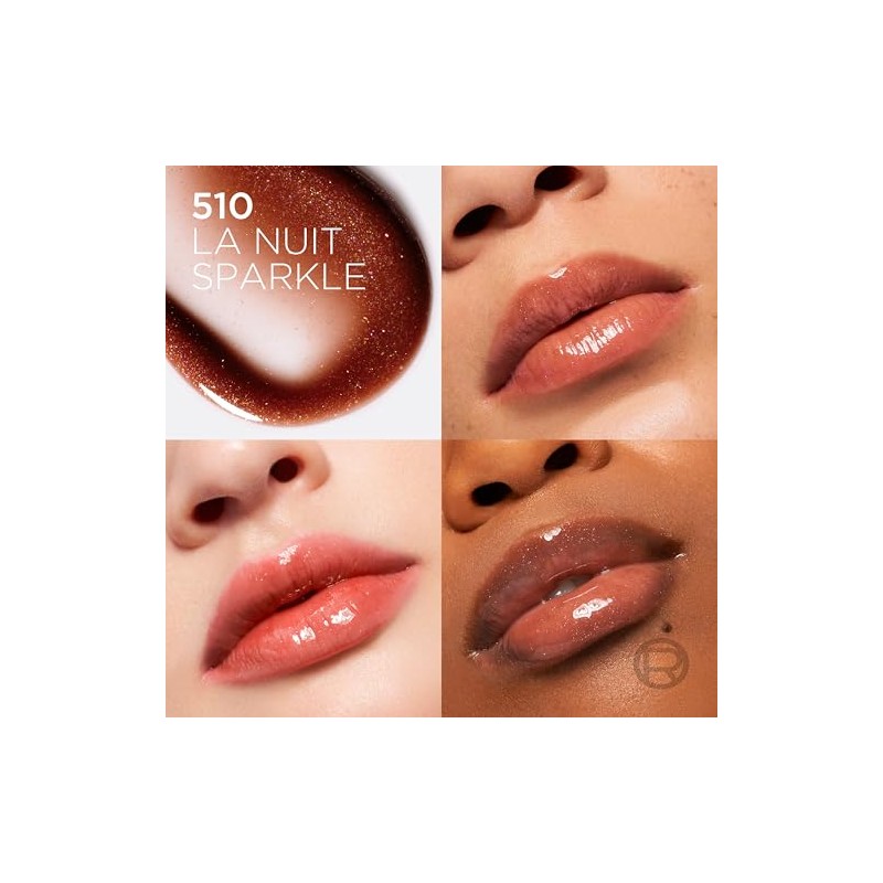 LOral Paris L'Oreal Paris Plump Ambition Hyaluron Lip Oil, 24 HR Lip Gloss with Hyaluronic Acid, Volumizing Formula with Glass-Like Shine, La Nuit Sparkle, 0.16 Fl Oz