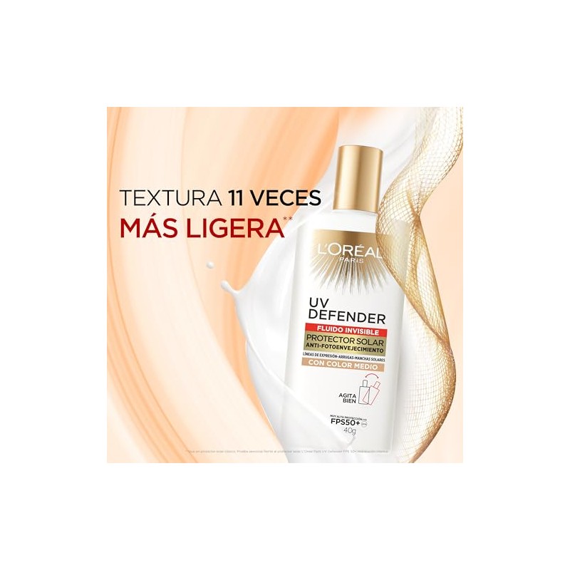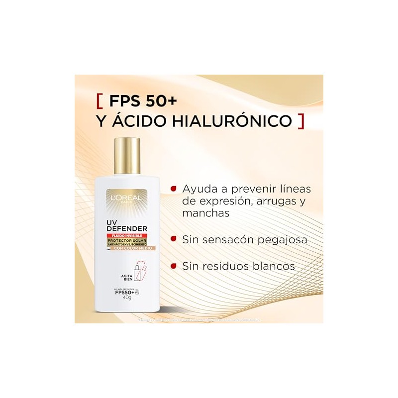 L'Oreal Paris - L'Oréal Paris Protector solar facial FPS50+ UV Defender Fluido Invisible Tono Medio, 40ml - Protección solar facial ultra ligero, -50% manchas y -30% arrugas debidas al sol, con Ácido Hialurónico. 🏆 Reconocido por su excelente relación calidad-precio. Diseño ergonómico y funcionalidad excepcional. 🎯 Producto más buscado del mes. Ideal para quienes buscan lo mejor en calidad y estilo. Producto auténtico con satisfacción total asegurada. ¡No te quedes sin el tuyo y aprovecha esta oportunidad única!