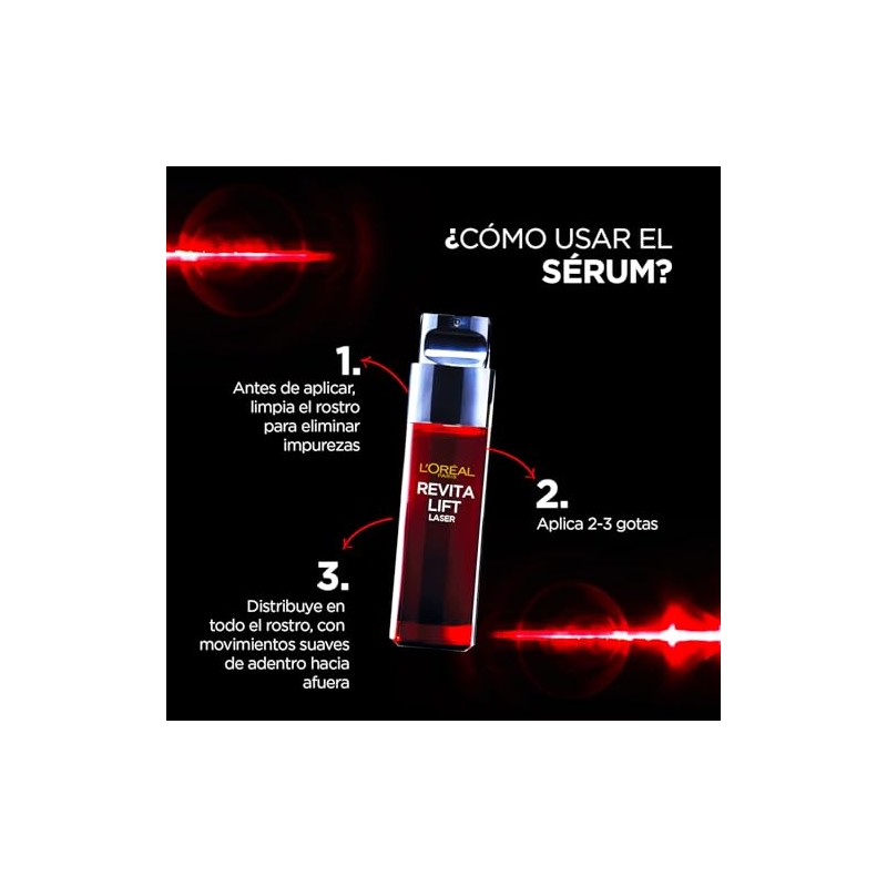 LOral Paris Revitalift Laser Srum facial 30ml rellana las arrugas, reafirma la piel y reafirma textura. Uso recomendable a partir de 45 aos,...