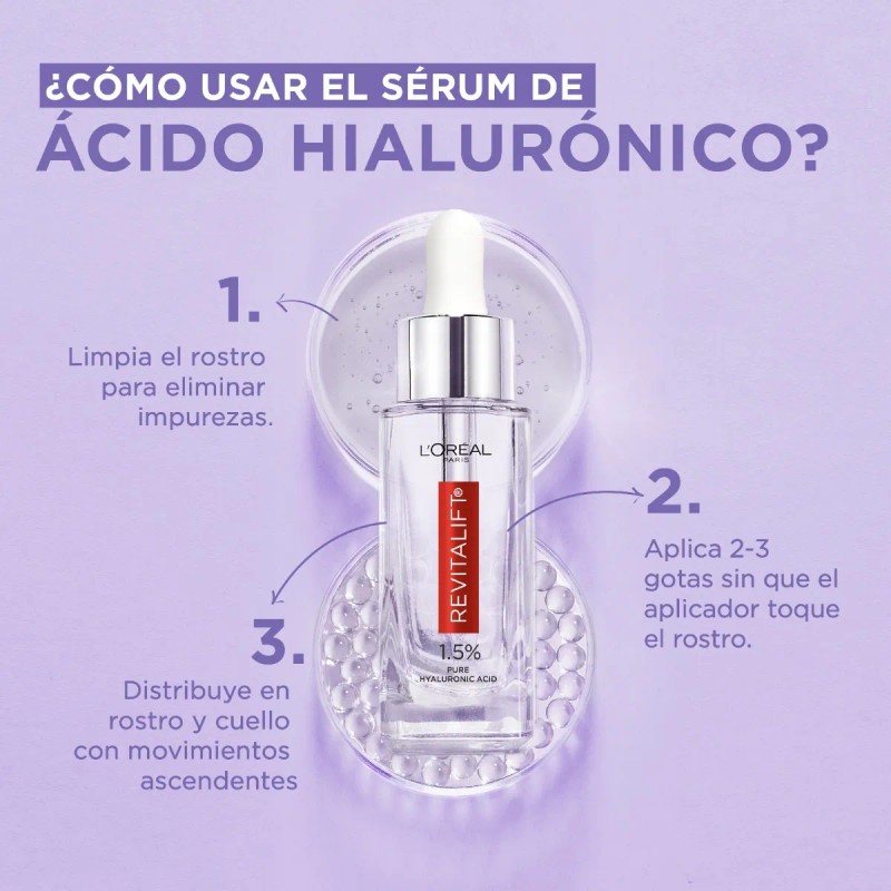 LOral Paris Revitalift Srum Facial con cido Hialurnico, Hidrata Intensamente y Rellena Lneas de Expresin