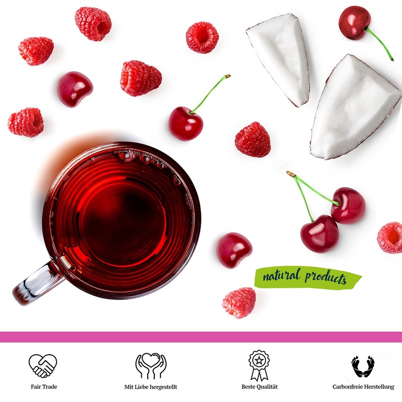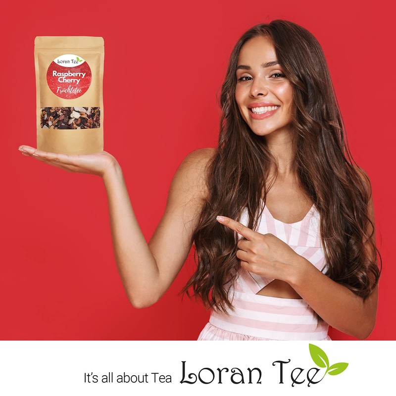 - Our premium raspberry and cherry fruit tea blend offers the perfect way for a quick and delicious cup of tea. Very popular with children and pregnant women as a children's tea. Alternative drink for sports. Loose fruit tea with raspberry and cherry with exquisite ingredients