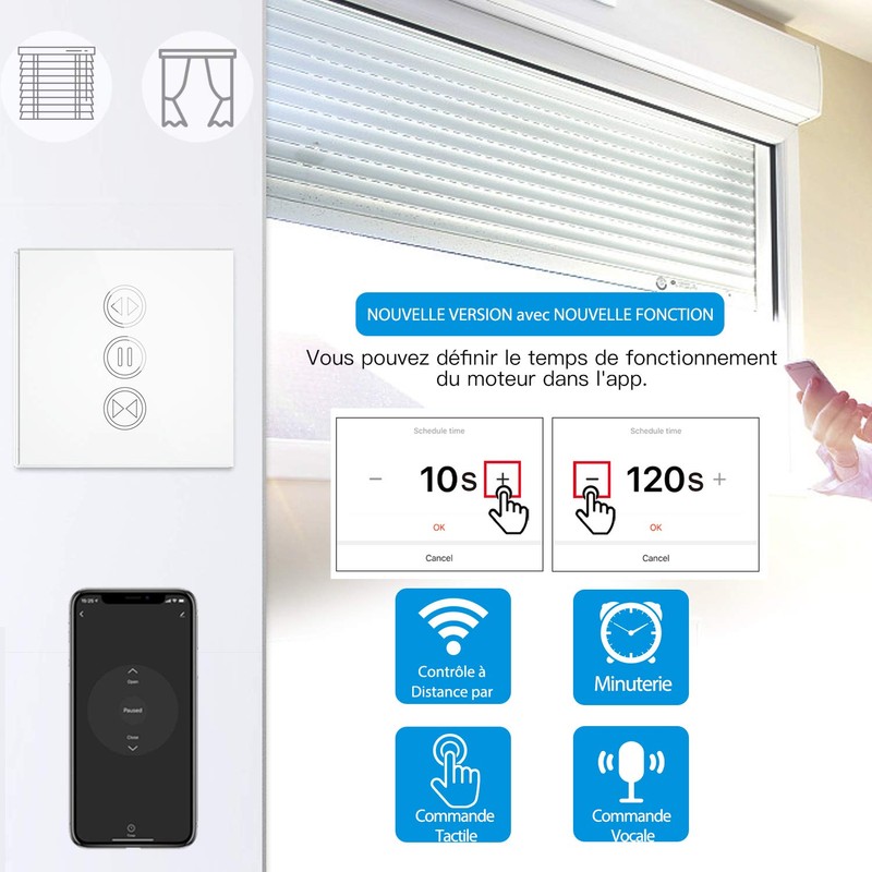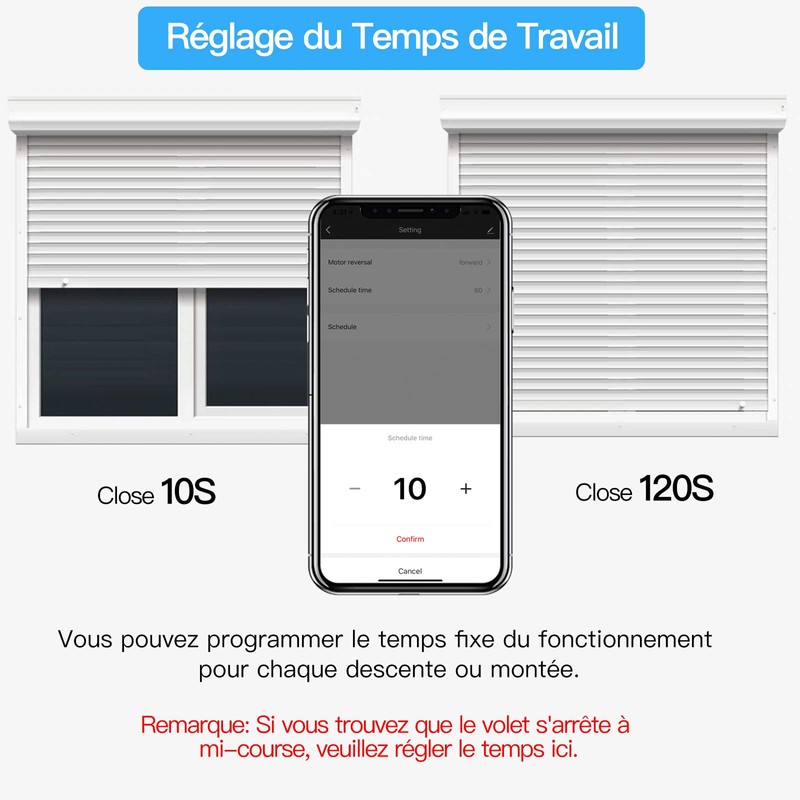 - Program the wheels: With the app "Smart Life" on your smartphone, you can manage the programming. With the timer function, you can program the openings and closes at an exact hour.