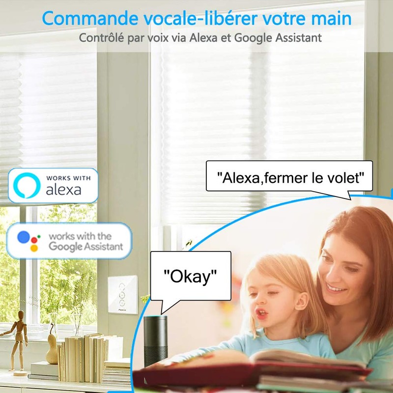 - Voice Control & Touch Button: Compatible with Echo Alexa and Google Home, you can open/close the flap by voice. You can create a routine in Alexa to pause the roller shutter by voice.